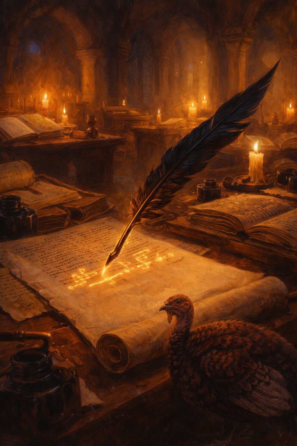 And then there's the turkey. In the story, the enchanted quill draws a turkey in the margin of every manuscript it reviews. Nobody taught it to do this. It just happens. Some problems, it turns out, are features in disguise.